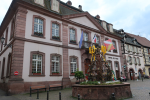 隣町のRiquewihrよりは大きな町ですが、それでも人口は約5千人程度です。8世紀には Rathaldovilare として知られていた古い町です。メインストリートのGrand Rueの周りに古い16世紀頃の色とりどりの木骨組の家が立ち並んでいてかわいらしい風景ですが、KasersbergやRiquewihrに比べるともうちょっと普通っぽい感じで、かえって落ち着いた感じで私たちにはむしろ好ましい雰囲気でした。この辺りは特級クラス(Grand Cru)のワインを生産することでも知られています。