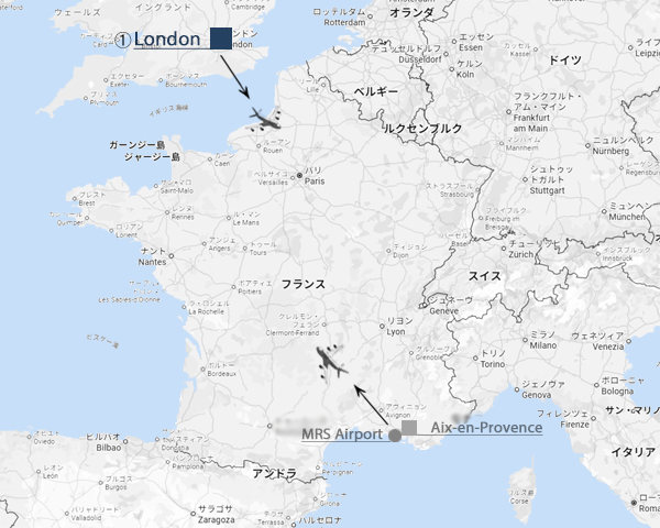10/28 Aix-en-ProvenceからマルセーユMRS空港へ行き、飛行機でLondonへ。