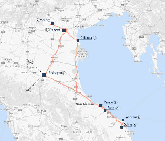 12/28 AnconaからOsimo、Chioggiaに立ち寄ってからPadovaへ。