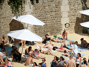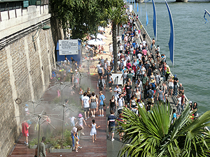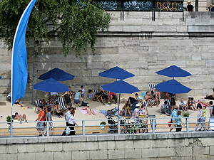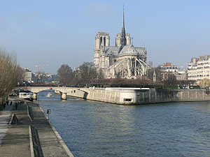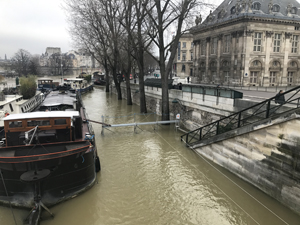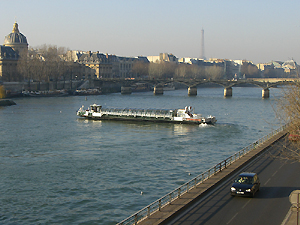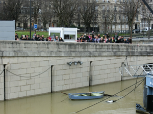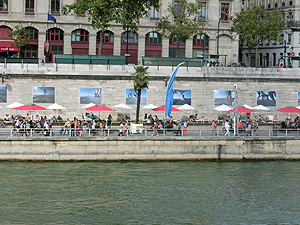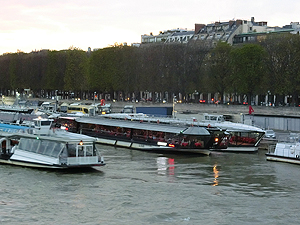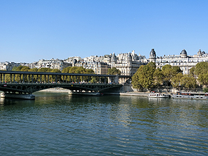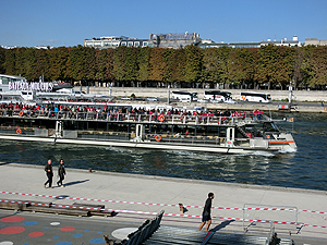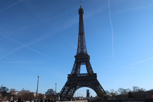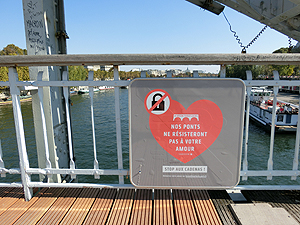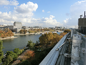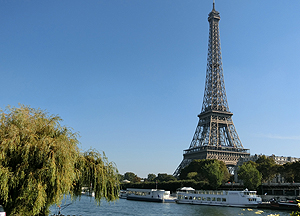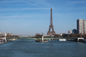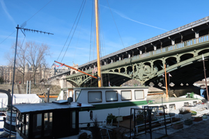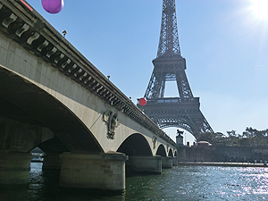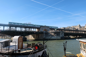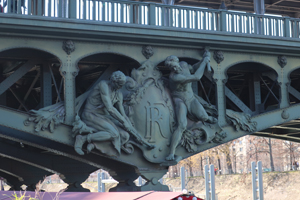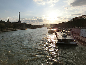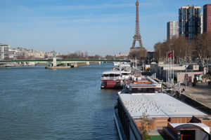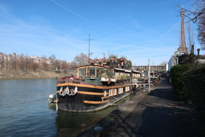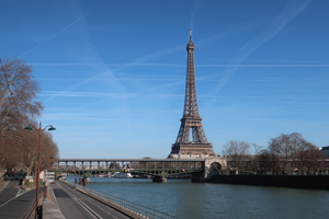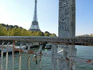というわけで先ずは玄関先から徒歩30秒でセーヌ川の右岸(セーヌ川の流れる方向を基準に左右を決めます)の道路に突き当たり、そこから下流方向、つまり右側に向かって歩いたところで反対側を振り返るとPont de Bir-Hakeim(ビラケム橋)の背後にTour Eiffel (エッフェル塔)が見えます。Pont de Bir-Hakeimは中央が自転車と歩行者、その両側を車両が通行する構造で、鉄骨のアーチが美しい橋です。よくドレスアップしたカップルがプロに結婚記念撮影を依頼してここにやって来ます。割合でいうと中国系、韓国系、ヒスパニック系が圧倒的に多い感じです。