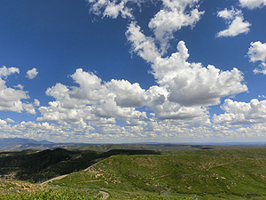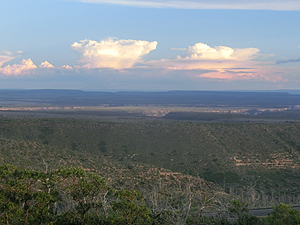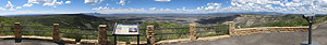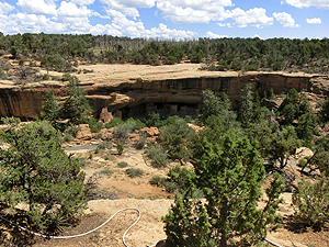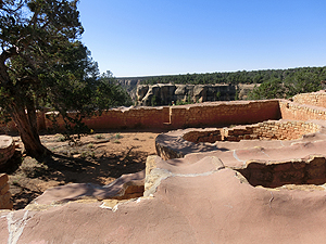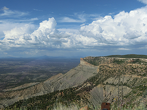 公園入り口から入り山道を30分ほど運転していくとあるメサベルデのビジターセンター。ホテル、レストランもあり、現地ツアーもここから出ている。夏の間は大学の考古学を専門とする教授や学生がガイドのアルバイトに来ており、タイミングが良ければ非常に内容の濃い話を聞くことが出来る。このポイントからは、ユタ州、アリゾナ州、ニューメキシコ州が見渡せる。