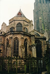 マルクト広場のすぐ近くです。15世紀の市庁舎(STADHUIS)と12世紀の聖血礼拝堂(H. -BLOEDBASILIEK)などに囲まれた比較的小さな広場です。後者は下がロマネスク様式で上がゴシック様式という変わりもので、十字軍が東方から持ち帰ったとされるキリストの聖血を奉る礼拝堂です。いずれも優雅で美しい建物です。