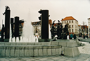 聖母教会の南の方にあります。愛の泉公園(MINNEWATER PARK)の穏やかな水の流れに白鳥が遊び、修道院に囲まれた端正な庭があり、落ち着くところです。ちょっと北に上るとビール製造所の博物館(BROUWERIJ "DE GOUDEN BOOM")があり、広場にはギリシャ神話の神がブルージュを訪ねる場面の彫刻があります。観光馬車の発着場所やレストランも多く、便利な一帯です。