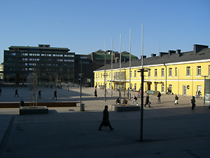 ホテルの前のLonnrotinkatu(“katu”は”通り”の意味)を東の中心街へと向かいます。路上はゴミなど無くとても清潔です。5分ほど歩くとParc Lonnrotinpuistikkoという公園が左手にARI、Kalevalaの像がありました。Kalevala(”英雄の地”の意味)とは、19世紀に医師エリアス・リョンロート(Elias Lonnrot)によって民間説話からまとめられたフィンランドの民族叙事詩。フィンランド語の文学のうち最も重要なもののうちの一つで、フィンランドを最終的に1917年のロシア帝国からの独立に導くのに多大な刺激を与えたとされている。