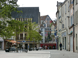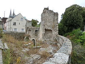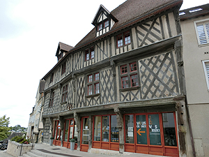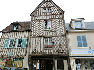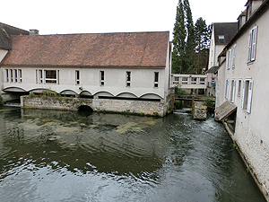 運河沿い旧市街へと。木骨組の家、水車?、城壁の名残がある。Eglise Saint Pierreは13世紀の教会。立派だが、内部の修復は進んでいない。Saint Aignanもあまり手が入っていない。