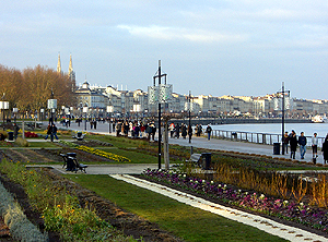 ガロンヌ川河畔の遊歩道が綺麗にモダンに整備され、河岸に列をなす巨大な英国風の建物群との対象が印象的です。