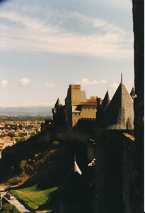 現在の町の中心はオード川(AUDE)の西側の下町(VILLE BASSE)にあり、駅や商店街もそちら側です。オード川の東側の小高い丘の上にシテ(LA CITE)と称する城塞都市があります。駅からシテまで荷物を持って歩くのは学生のバックパッカー以外はちょっと無理かもしれません。
