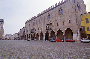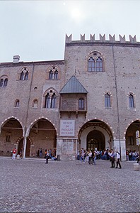 大聖堂とラジオーネ館の間をさらに北に行き、大きなソルデッロ広場(piazza Sordello)へと出ました。こちらは広場と呼ぶに相応しい広さがあります。広場の右前には巨大なドゥカーレ宮殿(palazzo Ducale)があり、奥には(Duomo)があります。ガイドブックによるとドゥカーレ宮殿の中に入るにはガイドツアーに参加する必要があるとのことで、朝早くから来てちょっと様子を見てみたのですが、どうやら個人で勝手に見て回ることの可能らしいことが分かり、勝手に見て回りました。途中、面白そうなモノがあると英語のガイドツアーが来るのを待って説明を聞いたりしながらそれなりに結構楽しめました。宮殿の裏にはサン・ジョルジョ城(Castello di San Giorgo)があります。