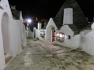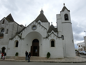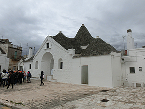 歴史的なTrulliのAia Piccola地区を散歩。普通の人たちが暮らしているようだ。小さな町。Piazza Plebiscitoへ出ると団体観光客が商業地区Rione MontiのTrulliの全体を眺めていた。Piazza del PopoloからSantuario dei Ss. Medici Cosma e Damianoの横を通って18世紀の二階建てTrulloであるTrullo Sovranoに向かう。小学生の団体が来ていて賑わっていた。