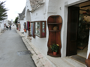 Trulliの歴史地区の一部。本物のTrulliの中にある。内部はまるで普通のアパート。物がごちゃごちゃとしている。お菓子類、パン、バター、ジャム、冷蔵庫には水、ハム類、Supmanteまであって、全部部屋代に入っているから好きなだけ食べられる。チェストの引き出しにはリネン類、バスルームには掃除用具がぎっしり。Vitoに現金を払うと、あとは好きなようして最後は部屋にカギを置いて出て行けばよいと。実に簡単で分かりやすい。