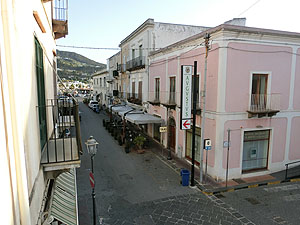 午後5時頃にLipriに到着。ホテルは気さくで気軽なリゾートホテルという感じ。でも部屋は広くて天井も高いし、天井のだまし絵もいい。窓は島一番の目抜き通りCorso Vittorio Emanuele IIに面しているけれどもシーズン・オフのせいかそれほどうるさくない。