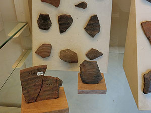 紀元前3000-2300年晩期石器時代の指でなぞった線状の土器模様