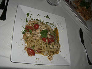 Al Mazariは静かな雰囲気で、高級すぎず、カジュアルすぎず、悪くなさそうです。先ずはAntipasto。盛り合わせにして貰いました。シチリアでは揚げ物をAntipastoで食べることが多いようです。Primiはパスタを2皿。メインは1皿。ワインとガス入水とで85ユーロ。室内の席は静かで落ち着いた雰囲気。料理も結構まともでした。帰り道すがら、再度Piazza Duomoの夜景を堪能し、ホテルへと帰りました。またまた満足。