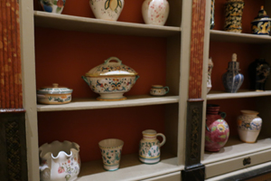 古い陶器が廊下に並んでいます