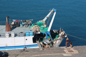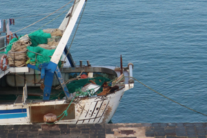 漁船らしいのですが、いつもシェパードが一緒に船に乗り降りしていました