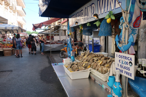 Siracusaの旧市街であるOrtigia島を散策します。まずはTempio di Apollo(アポロ神殿)。紀元前7世紀のシチリア最古のドーリス式神殿の遺構です。その先に Antico Mercato di Ortigia(古市場)があった。地元の人たちや観光客が入り混じって多くの人で賑わっていました。新鮮な魚介類、いろいろなスパイスや野菜、雑貨品など何でもありです。