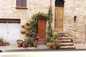 人口2300人の小さな町ですが、歴史地区はUNESCO世界遺産です。旧市街は東西に400m、南北に150m程度しかありませんが、家並みは美しく端正で、そこかしこに花が飾られており、可愛らしい町です。