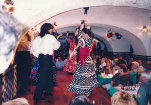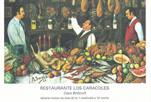 ランブラス通り周辺で手頃なレストランが色々とあります。有名なロス・カラコレス(Los Calacores)はランブラス通りからゴシック地区へと狭い路地を入ったところにあります。入り口にぶら下がった鳥が丸ごと地獄の炎に焼かれていたりしてちよっと圧倒されます。グラシア通りには明るく清潔なバールがあり、ビジネスマンの昼食や帰りがけの一杯に利用されているようです。