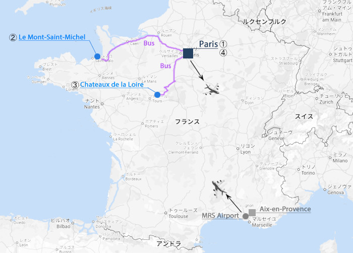 12/23 Aix-en-ProvenceからMarseilleのMRS空港へ移動しAir FranceでParisへ向かう。