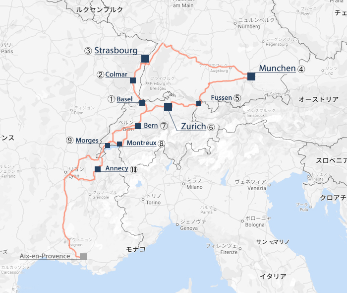 10/29 Aix-en-ProvenceからスイスBaselに立ち寄ってフランスColmarへ。