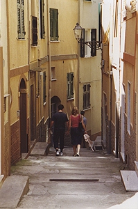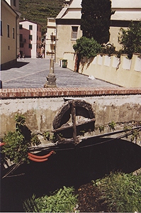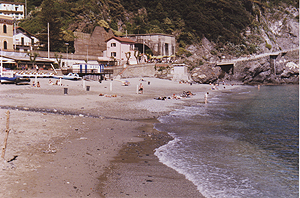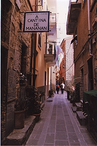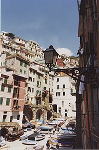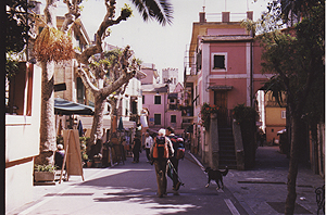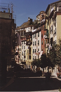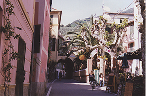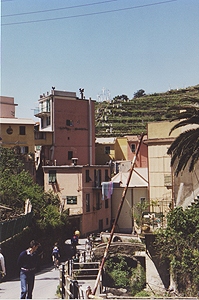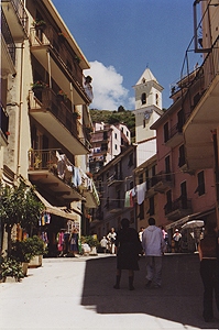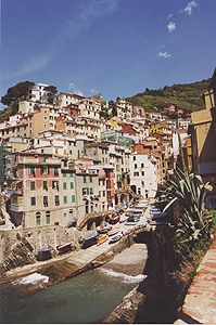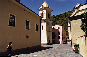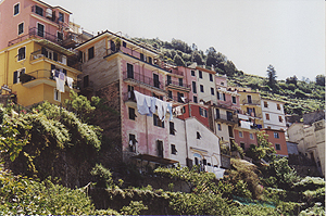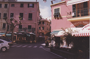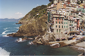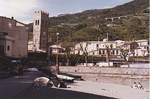 人口1100人。Manarolaと似た感じの町だけど、斜面は緩やかで穏やかなリゾートという感じ。ここも家並みはパステル調。 |