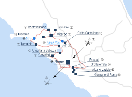 10/29 Sutri、Tarquinia、Vulci、Montefiasconeを経由してViterboへ。