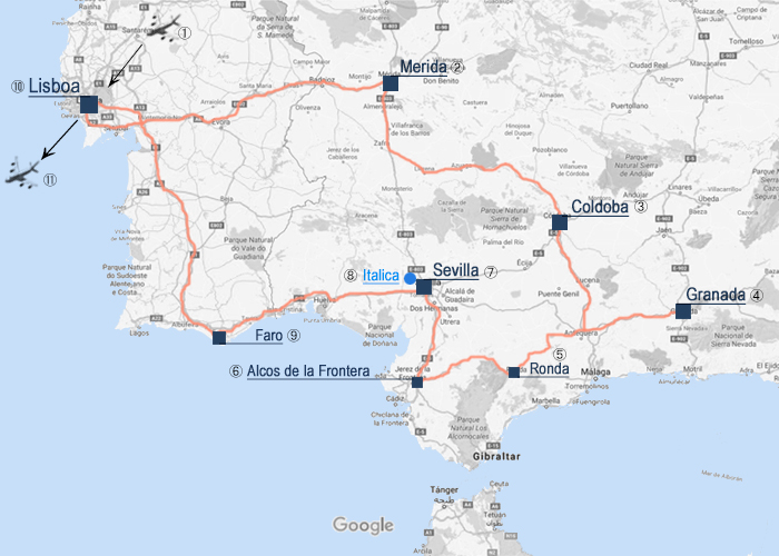 11/27 SevillaからItalica、Faroに立ち寄ってLisbonへ。