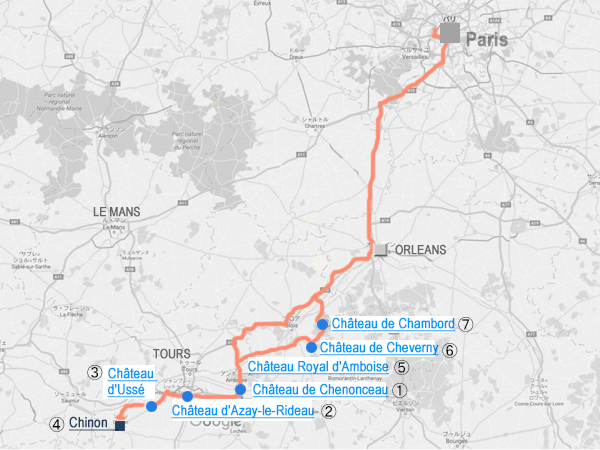 10/1 パリからCHENONCEAU、AZAY-LE-RIDEAU、USSEを経由してCHINONへ。