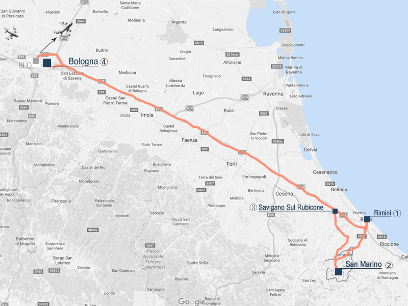 4/14 パリCDGからAF便でBolognaへ。空港でレンタカーを借りてRiminiへ。