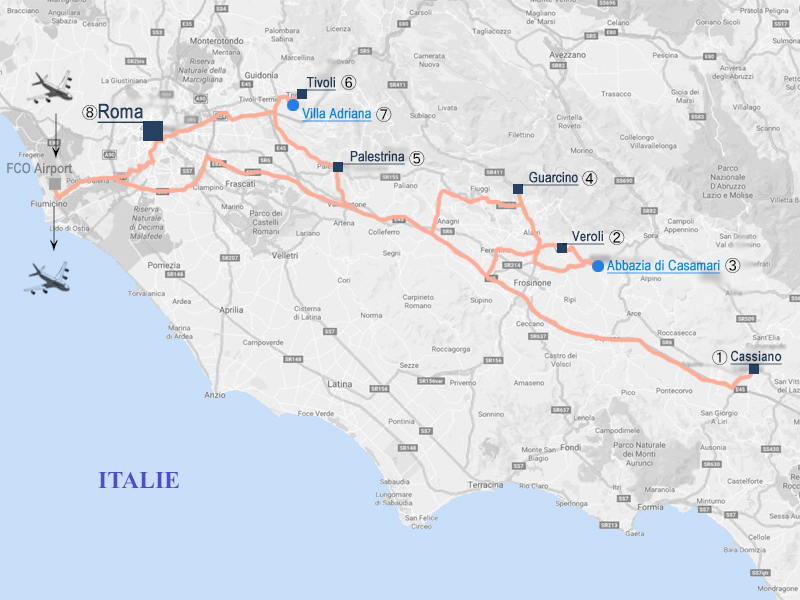 11/01 Paris CDG空港からROMA FCO空港までAF便で飛び、そこからレンタカーでCassinoに寄ってからVeroliで一泊。