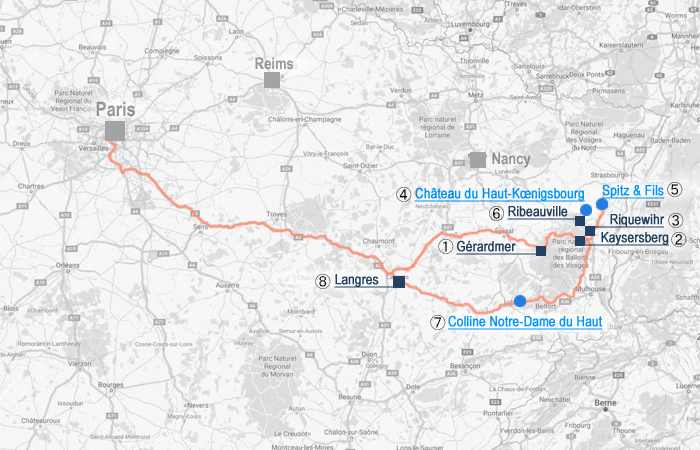 05/16 Parisの自宅から車でAlsace方面へ。途中Alsace出前の山間地にあるGerardmerで昼食。その後Kaysersbergに立ち寄ってからRiquewirへと。