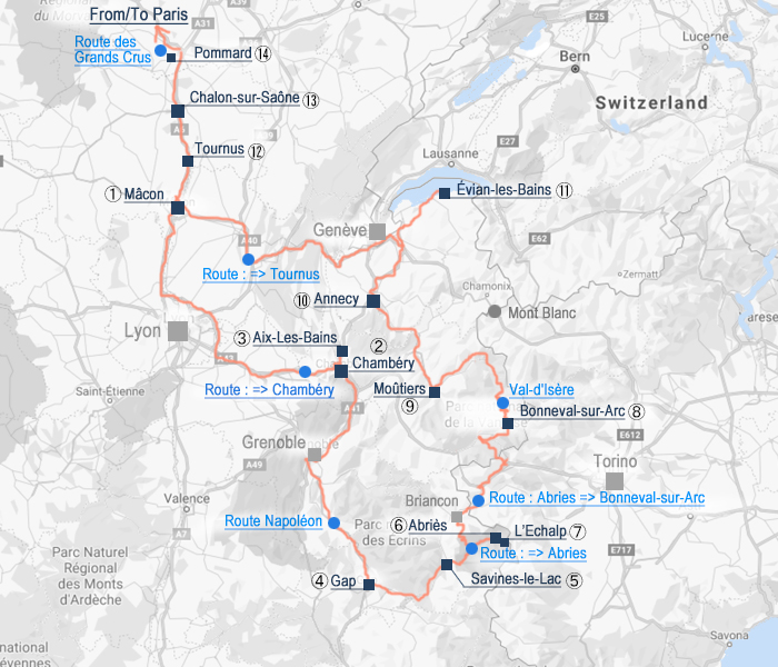 07/11 Parisの自宅から車で約400km、Maconに立ち寄ってから約180km先のChamberyへ。