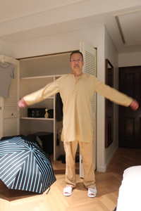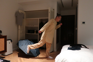 ホテルに着いてチェックイン、と、ここでハプニング。予約が入っていないと。その代わり、明日の予約は入っているという。予定変更したときにこのホテルの元の予約を消し忘れたらしい。でもスタッフは同じ部屋が空いているといって、全く同じ条件で今日の宿泊を受けてくれました。良かった。ホテルスタッフの皆さん本当に親切で良い感じです。ホテルロビーは、そうですね米国のゴルフ場のレストハウスみたいな感じ。木目デザイン、高い天井、広い空間、壁に図書が並ぶデコレーションなど。清潔で綺麗です。でもあまりお客さんの姿は見えませんでした。